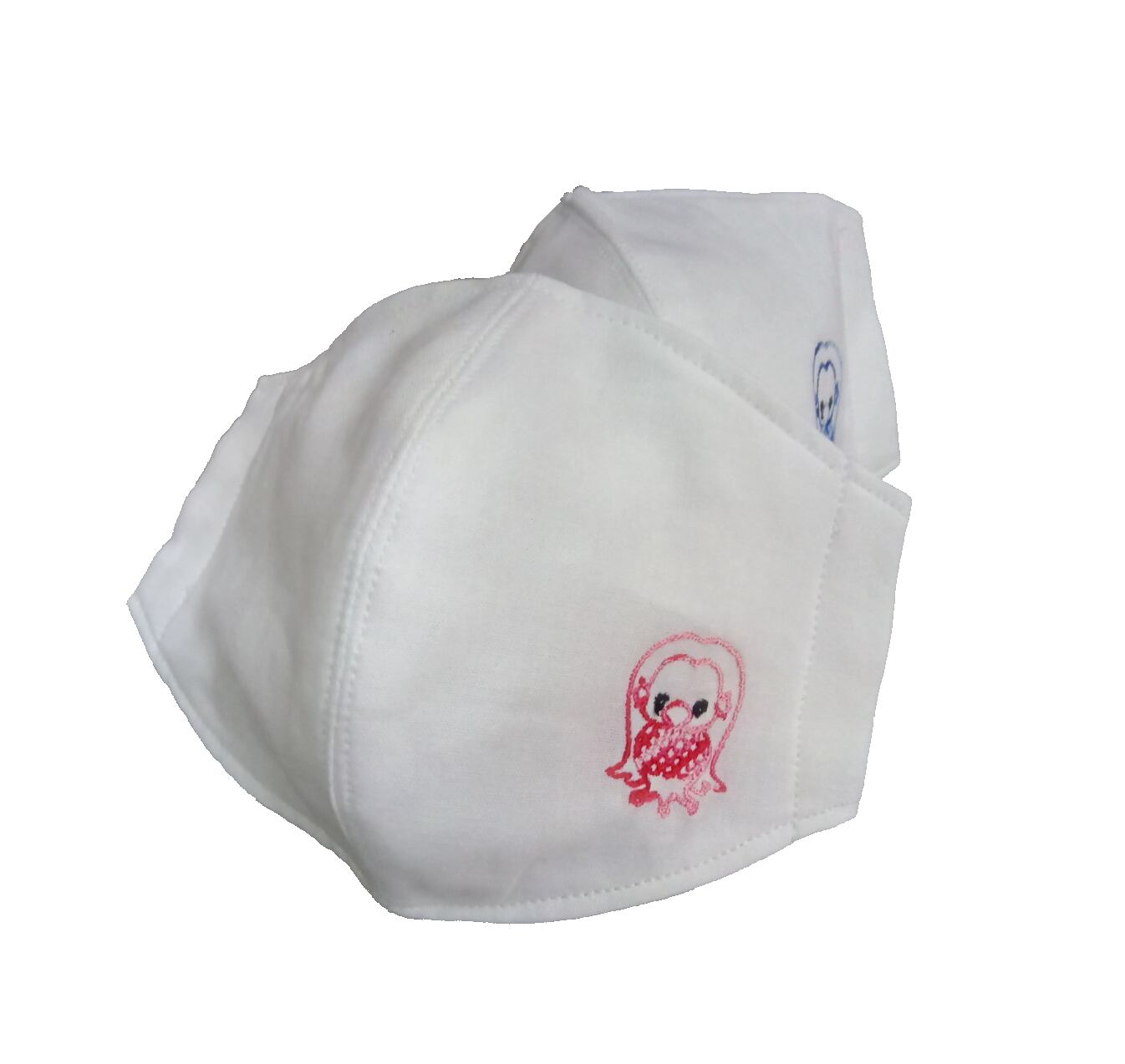 感染防止の願いを込めたアマビエの刺繍入り立体マスク。